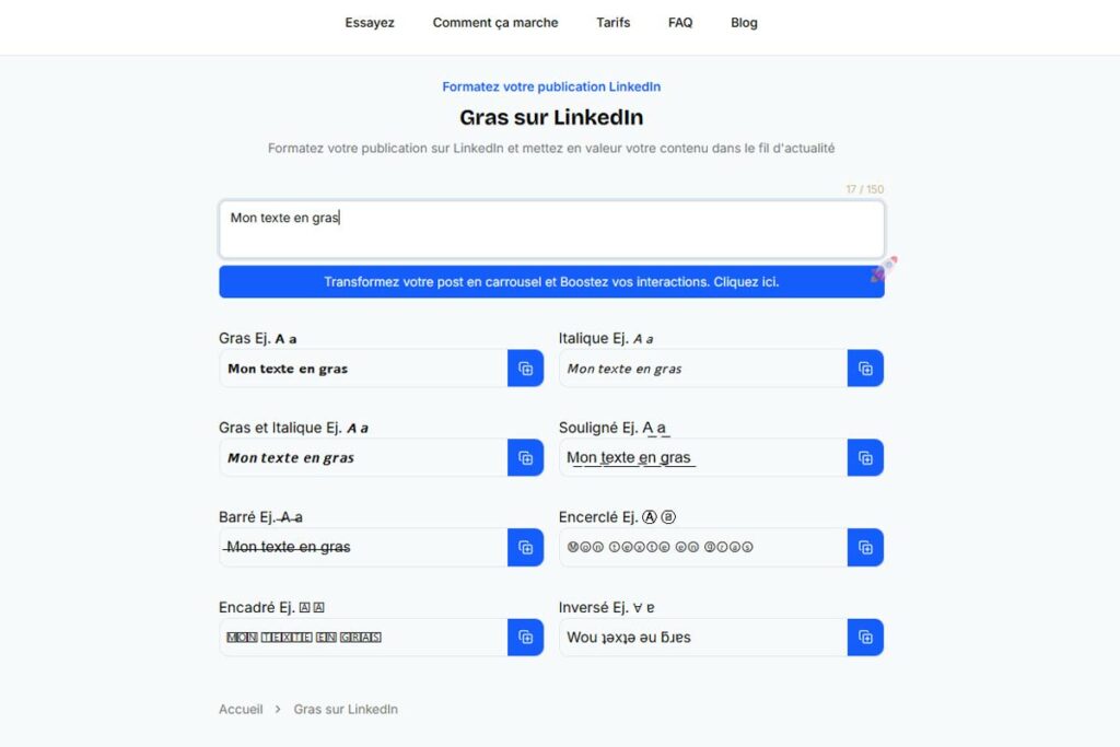 | FlowPost | Outil spécialisé | Texte gras uniquement | Gratuit |
